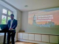 Im Anschluss an den Vortrag gab es eine rege Diskussion über die Geschichte und Gegenwart der Orthodoxie in der Ukraine. Bohdan Mostovyi beeindruckte durch seine strukturierte und umfassende Vorstellung der komplexen Geschichte der orthodoxen Kirchen in der Ukraine und seiner differenzierten Sicht auf die Geschehnisse in seinem Heimatland.